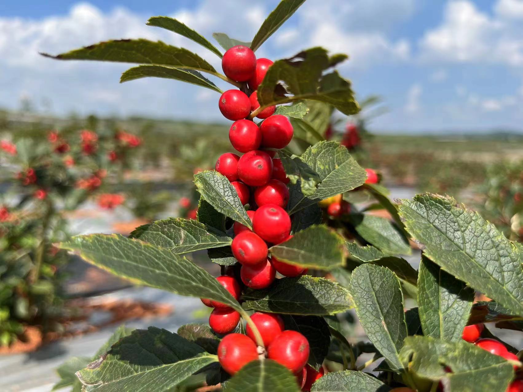 威?;叵娜站吧?福滿紅萬畝北美冬青